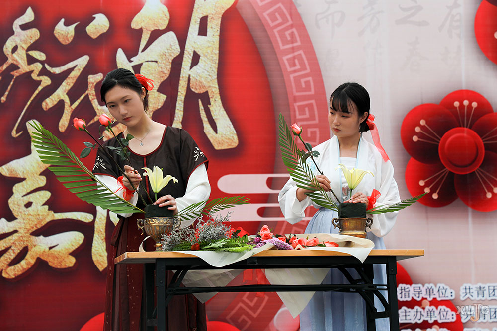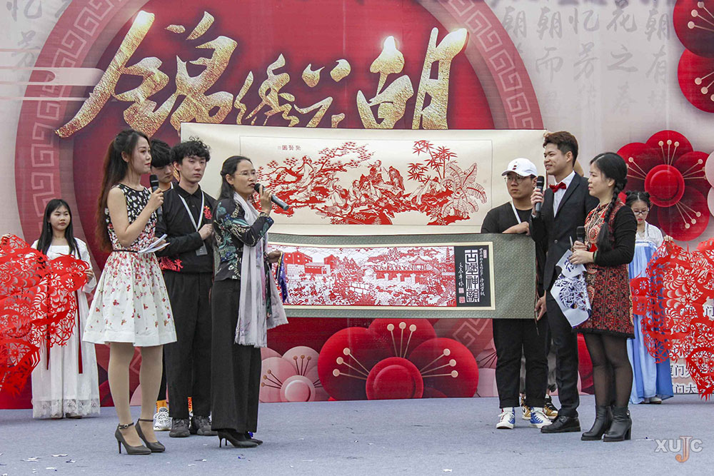 在花朝节期间,除了祭花神,古人通常会结伴到郊外游览赏花,有些年轻女子还会裁剪五色彩纸贴在花枝上。这就是花朝节“踏青”“赏红”习俗的由来。这样传统的习俗在本次活动中也得到了体现。