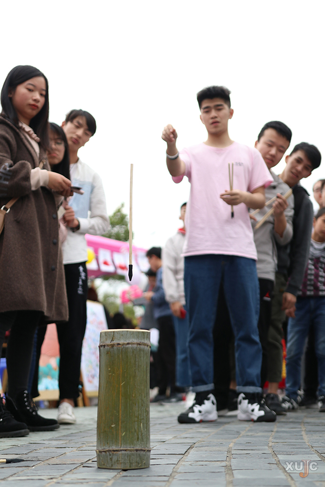 在传统文化体验活动中,各个社团充分发挥特有优势,精心准备了各种游戏。音乐协会准备的“吟花咏柳”游戏,参与者在规定时间内须唱出带有“花”的歌曲,吟出带有“花”的诗词;在“锦绣年华”活动中,汉之华章汉服社则教授游园者在手帕上进行简单的刺绣;益与义茶文化协会准备的投壶游戏,让许多同学宁愿排长队也要体验一把;文物爱好者交流协会的“妙笔生花”活动,则普及了花朝节的相关知识……