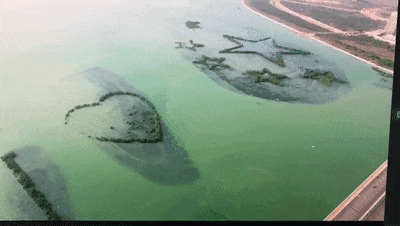 此时的卢昌义灵感一闪,与同事们一道,决定利用不同种类红树植物生长速度及群落外貌颜色的差异,在滩涂上勾勒一幅“我爱祖国”的地标景观。