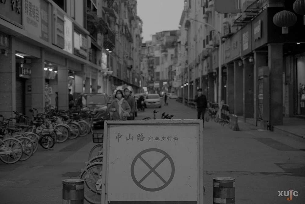 我在中山路步行街。曾经熙熙攘攘的街道只剩下三两行人。