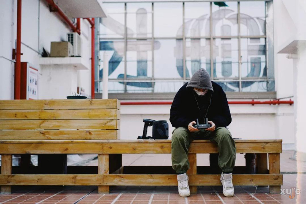 我在我家的楼顶。因为没办法出门,我就只能在楼顶航拍,借用无人机的视角去看看外面的世界。