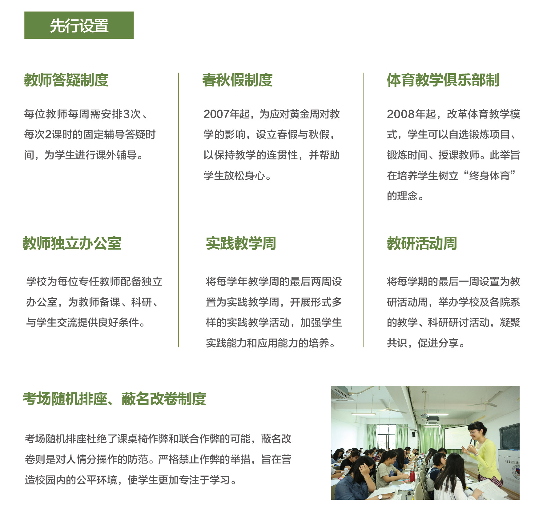 学校紧跟社会需求设置专业,构建合适的学科专业体系,并确立“宽口径、厚基础、重能力、求个性”的人才培养模式。