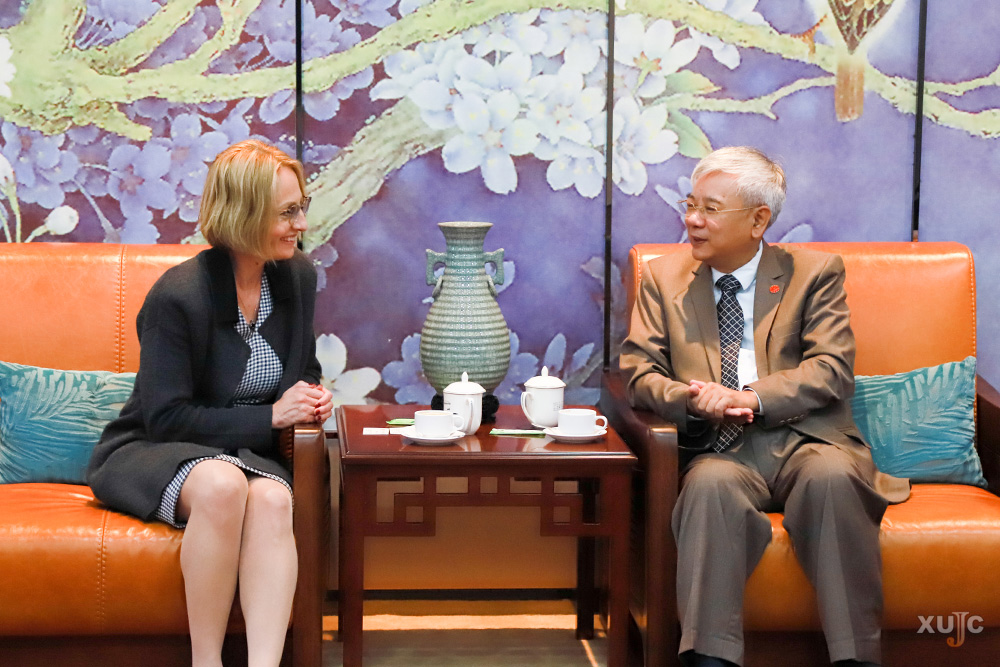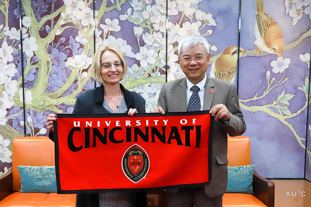 王瑞方院长(右)和美国辛辛那提大学工程与应用科学学院全球事务长Oxana Prokhorova(左)会谈