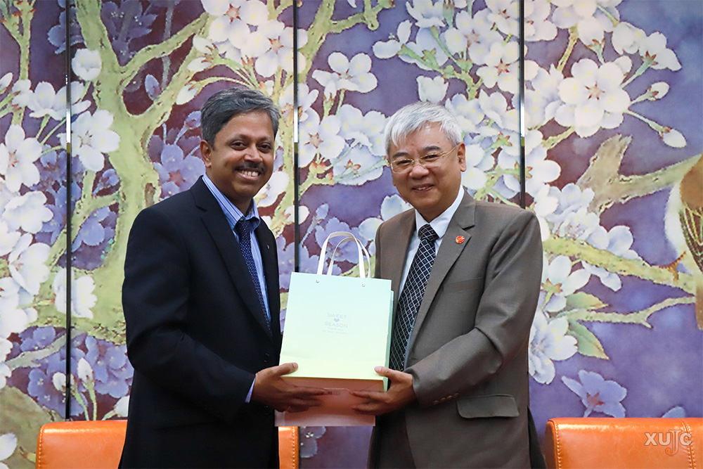 在主楼群3号楼703接待室,嘉庚学院院长王瑞芳教授与来宾就我校创办历程进行了交流与沟通。嘉庚学院副院长鲁同安、会计与金融学院长Ng Beoy Kui(黄梅贵)教授,厦门大学马来西亚分校国际处处长杨晓清副教授陪同参加会谈。