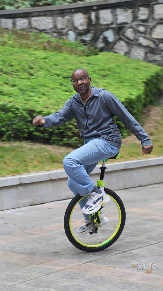 即便身处异国,一万四千公里的距离也没有磨灭国际商务学院国际班美籍外教Daniel·T·Barkley对于独轮车的热爱。闲暇时间,他总是在阳光普照的林荫道上骑上自己那辆“迷你”的独轮车。独轮车的构造虽然简单,可骑起来极为考验驾驶人的平衡感和位移感。然而,Daniel骑起来却如履平地,娴熟自如,时不时做出伏地转弯、u型线等高难度动作。Daniel的学生每每看到他骑车的背影,总是忍不住拍照留念,奔走相告道,“快看!Daniel老师又骑独轮车啦!”