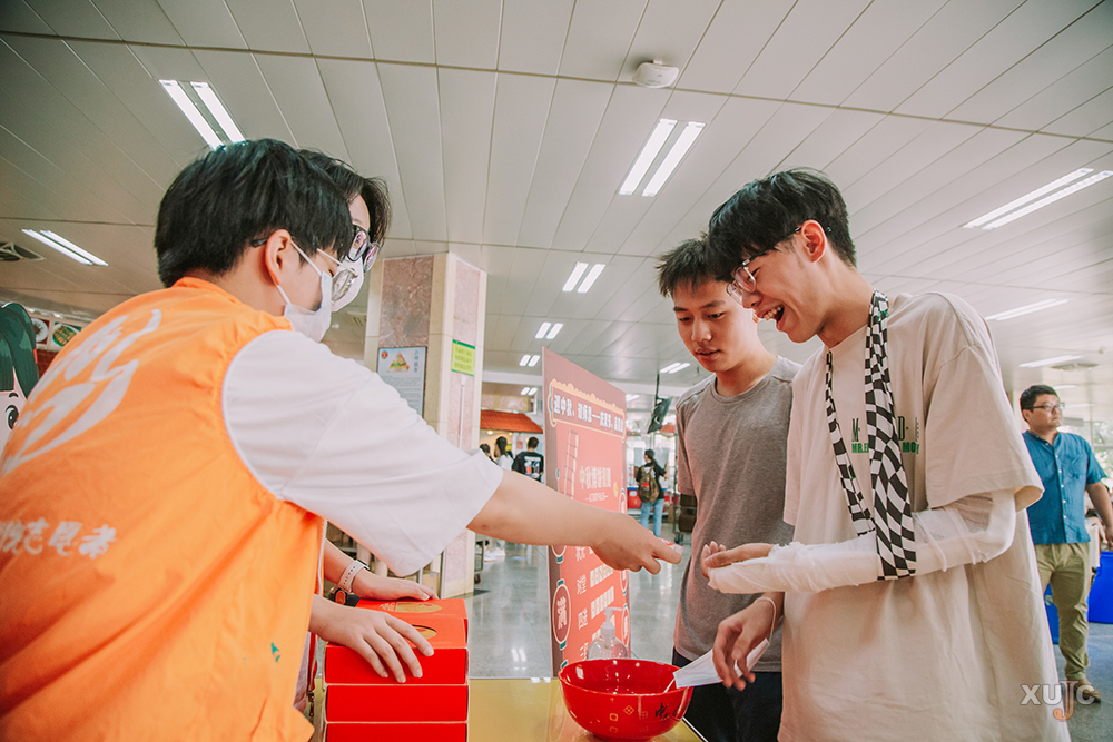 9月9日,我校南区、中区、北区食堂开展了“迎中秋、谢师恩——庆双节、品美食”活动。当日午餐时段,校内师生到餐厅用餐可免费领取月饼,月饼的口味丰富,有凤梨、水蜜桃、哈密瓜等口味供选择。本次活动除了“共享月饼”环节,还设置了“民俗体验”环节。师生凭校园卡等有效证件参与博饼。活动设置月饼、纸巾、餐券等奖励。现场气氛热烈,当骰子与大瓷碗相遇时,所有人的眼睛在那一刻聚焦,在几秒钟的凝视之后继而爆发出欢呼声或者长吁短叹。博到状元的“嘉”人还可以和状元立牌合影留念,珍藏这一刻的好运气。