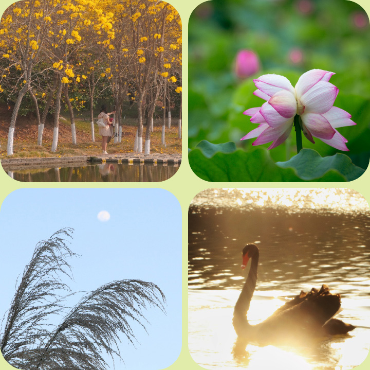 春天的黄花风铃木抖落一地碎金,夏日的荷花池托起满塘清露,秋天的芦苇丛摇曳成诗,冬天的绿意在不谢幕的南国里绵延——这一幅时序画卷,收藏了“嘉园”永不重复的四季。