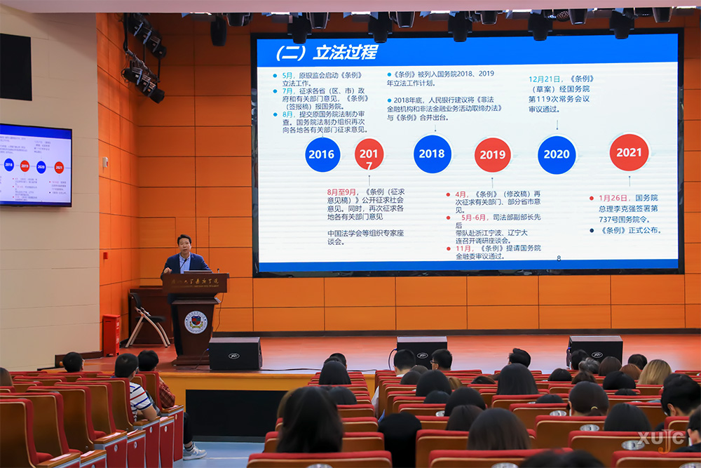 漳州银保监分局龙海监管组组长刘志强为学子们讲解了非法集资的特征,深入浅出地解读了《防范和处置非法集资条例》。他指出,防范和处置非法集资重点在于:一是明确非法集资定义及适用范围;二是建立职责明确,协同配合,保障有力的工作机制;三是强化预防监测机制;四是完善处置手段和措施。这些专业性强的知识,增强了学生对于非法集资的法律意识。