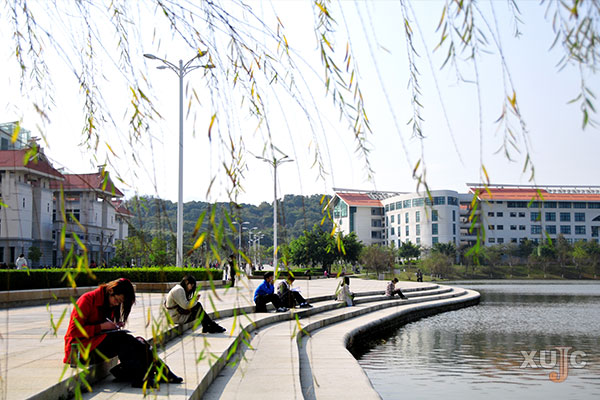 当栖霞湖还处在一片云雾缭绕时,晨曦的第一抹光已透过云雾照耀在主楼群,蓝天和远山倒影在微微荡漾的湖面上。湖边的树上一两只鸟清脆的叫声,总能赶走你的倦意。这里有着这样的一群人,当整个校园还处在一片朦胧中时,他们已在栖霞湖边晨读。从清晨到夜幕,从盎然的春季到冷峻的冬日,从未停下。在这里,你可以感受到梦想的力量是多么伟大,可以感受到一群普通人为梦想努力时的感动。当你疲了累了,看看泛着凌波的湖面,看看他们,便能振奋精神继续前进。他们就是嘉庚学院晨读队的同学们。