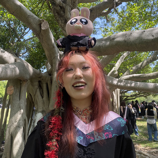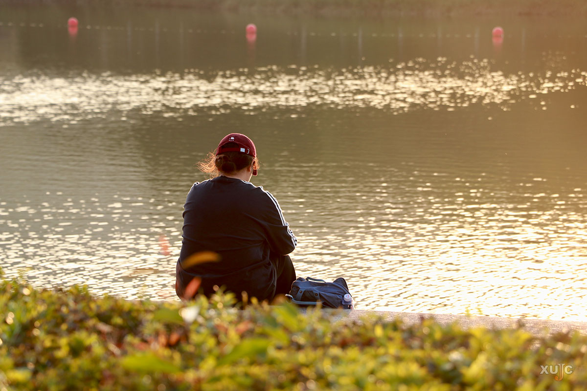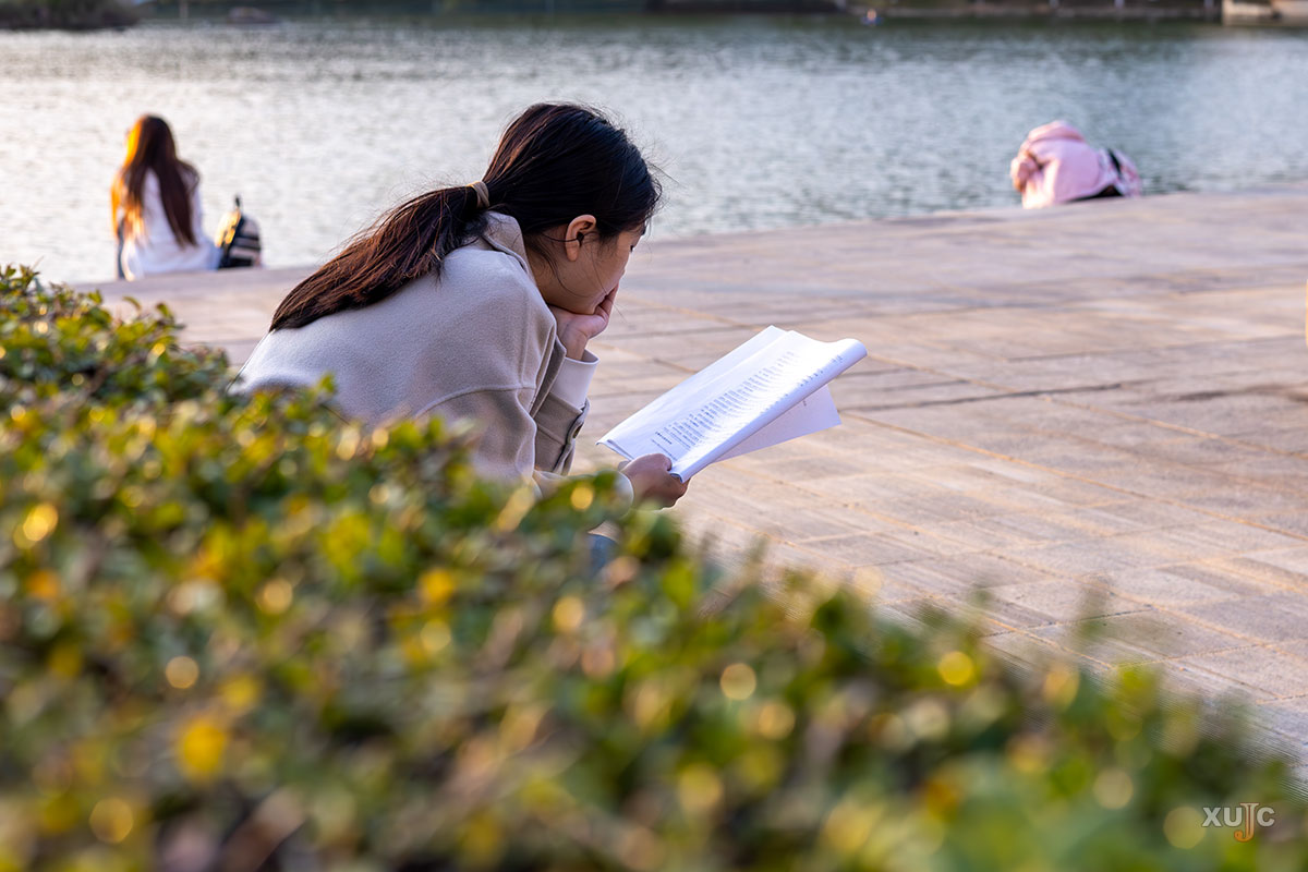 “我很喜欢晚饭后在图书馆前的栖霞湖边静坐片刻,凝望漫天晚霞,目送黑天鹅悠然游弋,紧绷的身心仿佛能重新蓄满能量。”这段静谧惬意的时光,也是陈茗诗考研路上调整心态、滋养心绪的珍贵片刻。