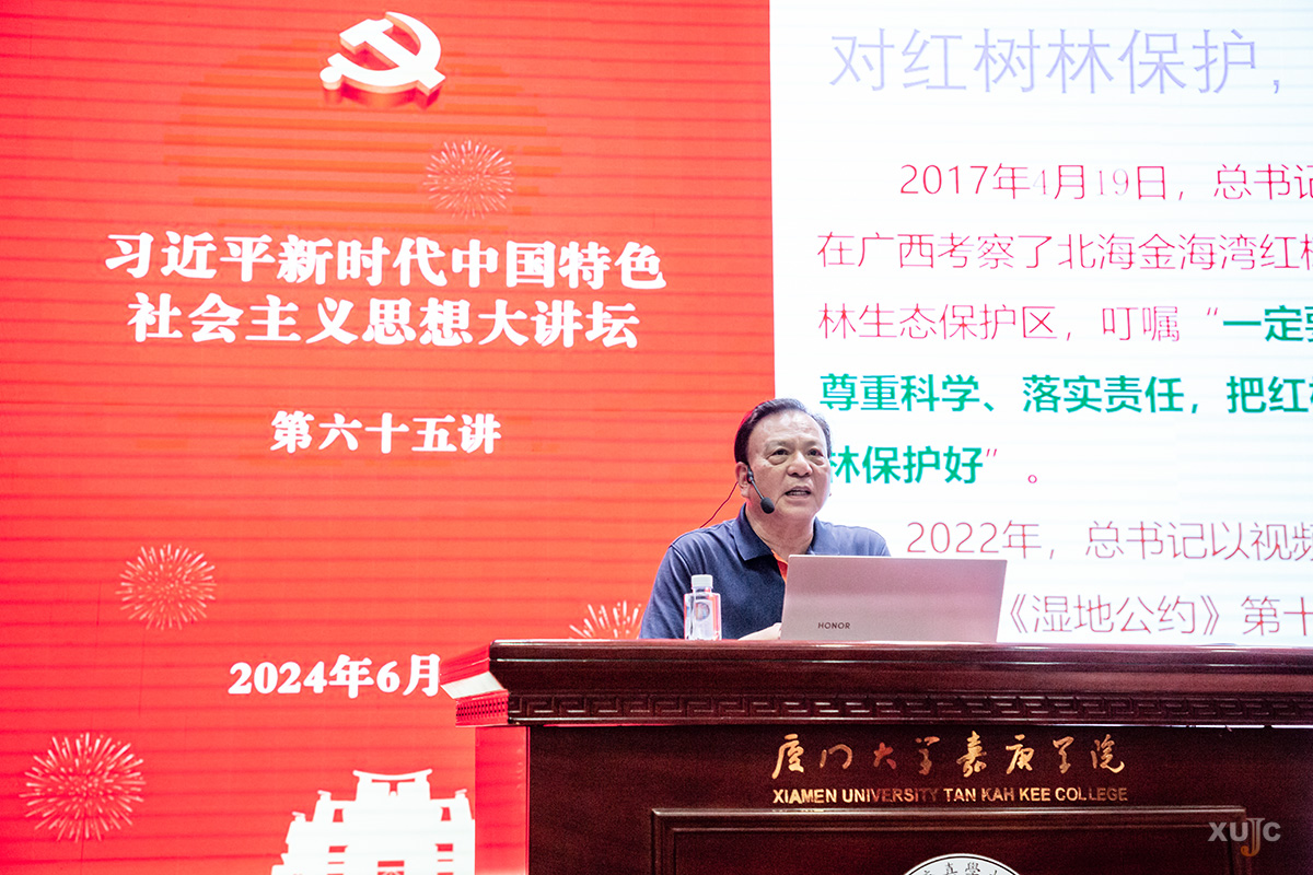 卢昌义为嘉庚学院学子作红树林主题演讲 图片来源:厦门大学