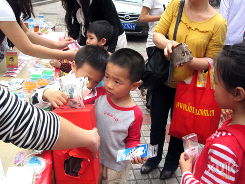 参与此次义卖活动的一位同学说:“义卖过程很辛苦,也遭到一些人的漠视,但我们更体验到了大多数人的爱心。”
