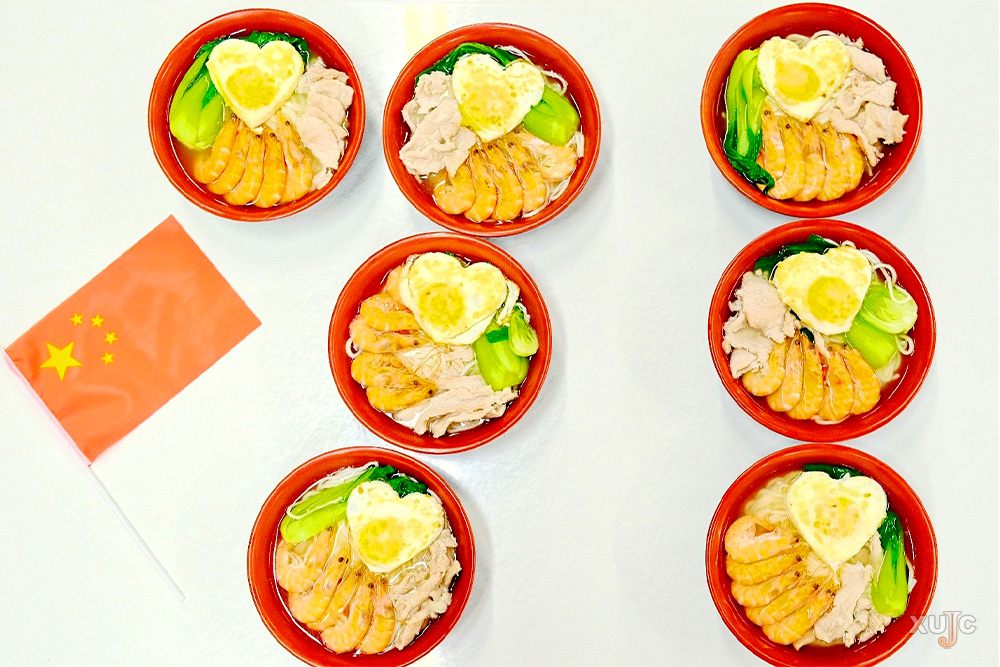 吃一碗“国庆面”,祝祖国妈妈生日快乐。“国庆面”在食堂档口一亮相就受到了师生关注,大二女生顾凌子刷卡点餐,面一端上窗口,她就拿起手机先给“国庆面”来了一张特写,“我超爱吃面的,吃‘国庆面’庆国庆,看似朴素,其实很特别,有文化的味道,更有幸福的味道,还有一种自豪感,嗯,中国人,倍有面儿!”