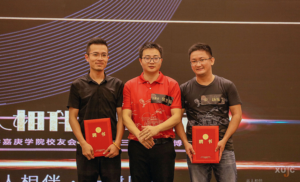 在聘任仪式上,鲁同安为理事长、监事长、秘书长颁发证书。第二届理事长张舸为副理事长李凯、许亚青、林岚岚、戴智勇、林伟栋、林晓坤、郑峰、王平颁授聘书;第二届监事长张哲铭为副监事长刘鸿惠、杨振艺颁授聘书;第二届秘书长林晓坤为副秘书长郑峰、王平、蔡乔迪颁授聘书。在新校友纳新仪式中,理事长张舸、监事长张哲铭为2019届新校友代表黄晨阳、陈琪送上本次活动的纪念文化衫。
