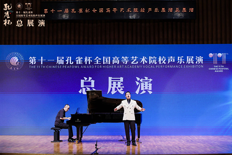 “孔雀杯”全国高等艺术院校声乐展演及系列活动是由中国声乐家协会与多所高等艺术院校联合发起举办的大规模、高规格、专业层次高的声乐展演及学术交流活动。本届展演汇聚了来自全国及世界各地300多所高校的近3000名师生同台竞技。经过个人预演、展演、总展演三轮比拼,评出各个选项。