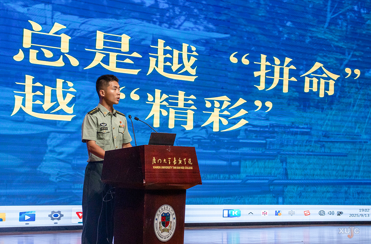学生军训团团长张永辉,嘉庚学院院长助理、学工部部长、团委书记姚祖婵,承训部队官兵和2025级新生代表共同参加了报告会。报告会由学工部副部长郑文钰主持。