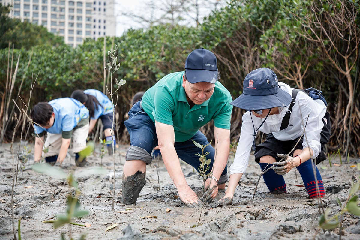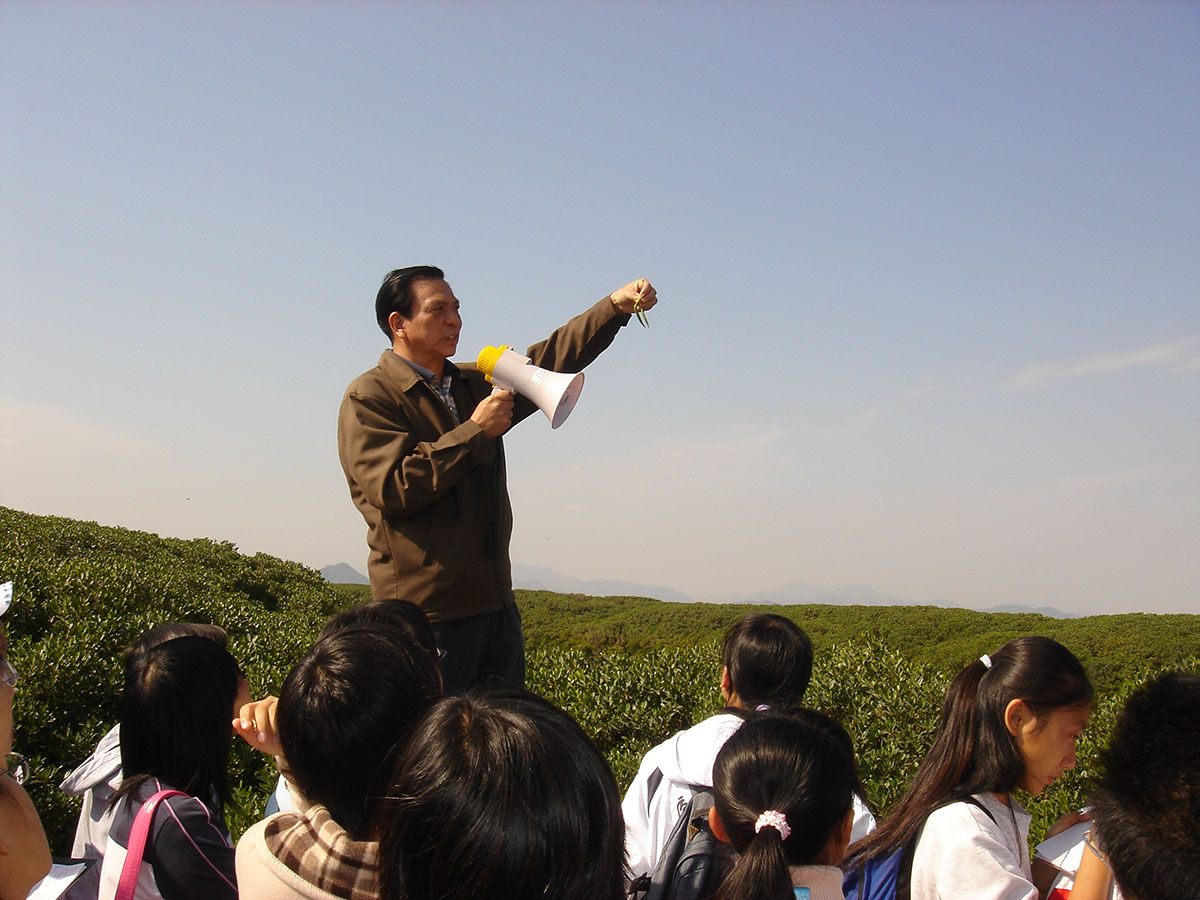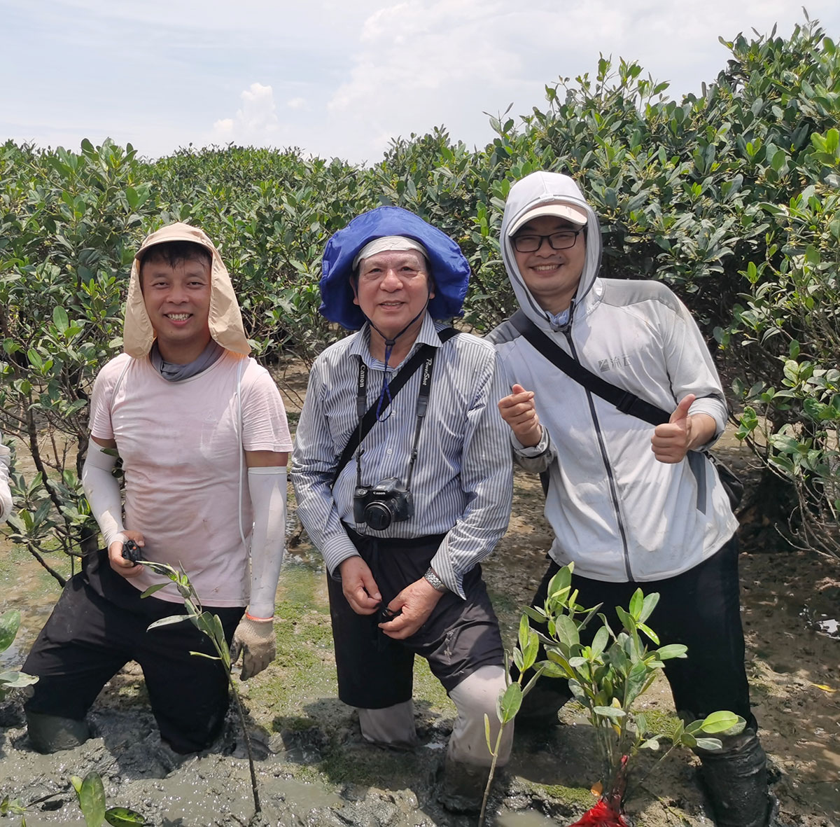 您是红树林的“守护者”,始终摸爬滚打在红树林保护的第一线,用脚步丈量着海岸线。还记得您带领我们种植红树的日子,您一步一步地为我们讲解、示范,挽起裤脚与我们一同在滩涂上劳动。那份对自然的敬畏与热爱,深深感染着我们每一个人。