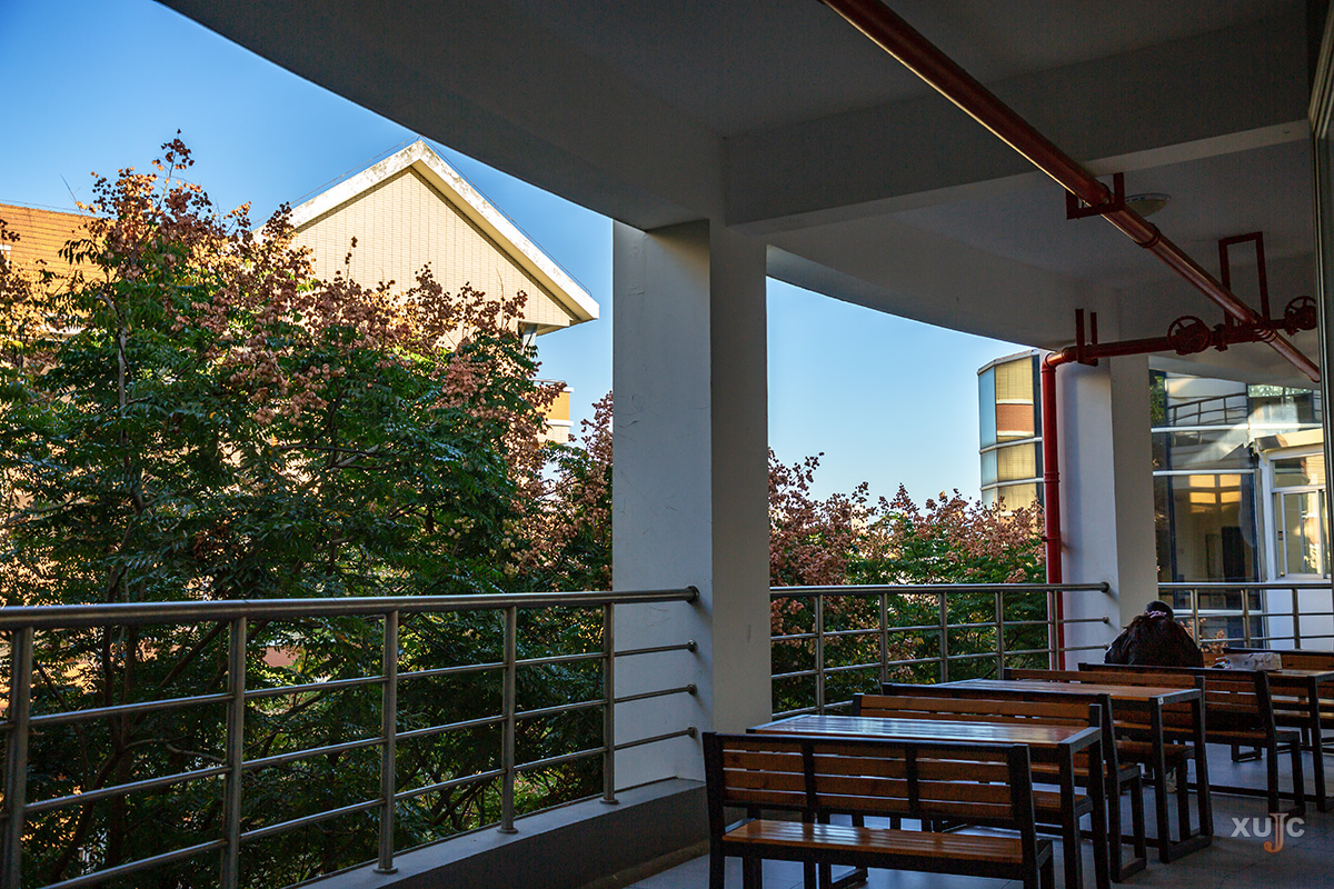 南区食堂四楼的露台上