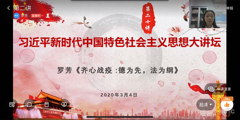 3月4日下午,由嘉庚学院党委举办的“线上党课”暨习近平新时代中国特色社会主义思想大讲坛第二十讲在线上如期开讲。法学院党总支书记罗芳和环境科学与工程学院党总支书记金亮分别为师生党员带来一堂法治教育课和科学教育课。