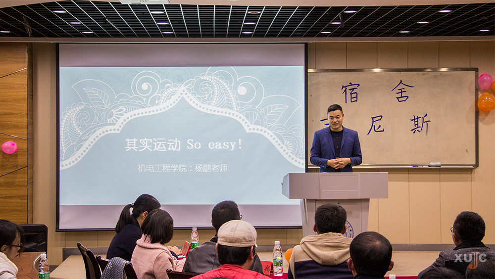 毕业于集美大学体育学院的颁奖嘉宾、机电工程学院行政秘书兼辅导员杨鹏分享运动小技巧