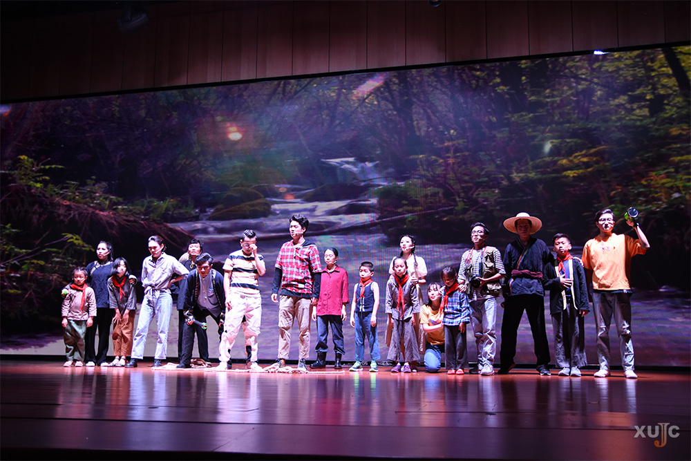 “大山孩子缺乏的不是努力,而是了解外面世界的窗口。我们的存在,就是为了打开他们的这扇窗……那年7月23日晚,我们正式启程,经历了两天两夜,36个小时的硬卧,2454公里,换乘了火车、大巴、小巴、牛车,在翻过两座大山之后,终于到达了我们的目的地——南沟村小学!”音乐话剧开场,演员们的讲述成功调动了观众的情绪,大家跟随着剧情仿佛也走进了那个遥远大山中的小学校。