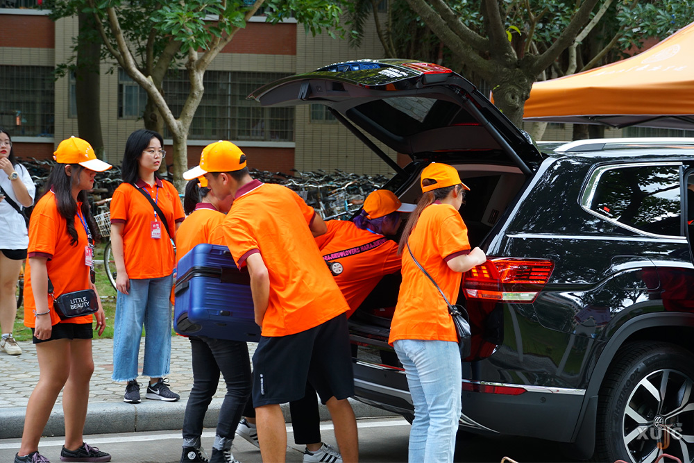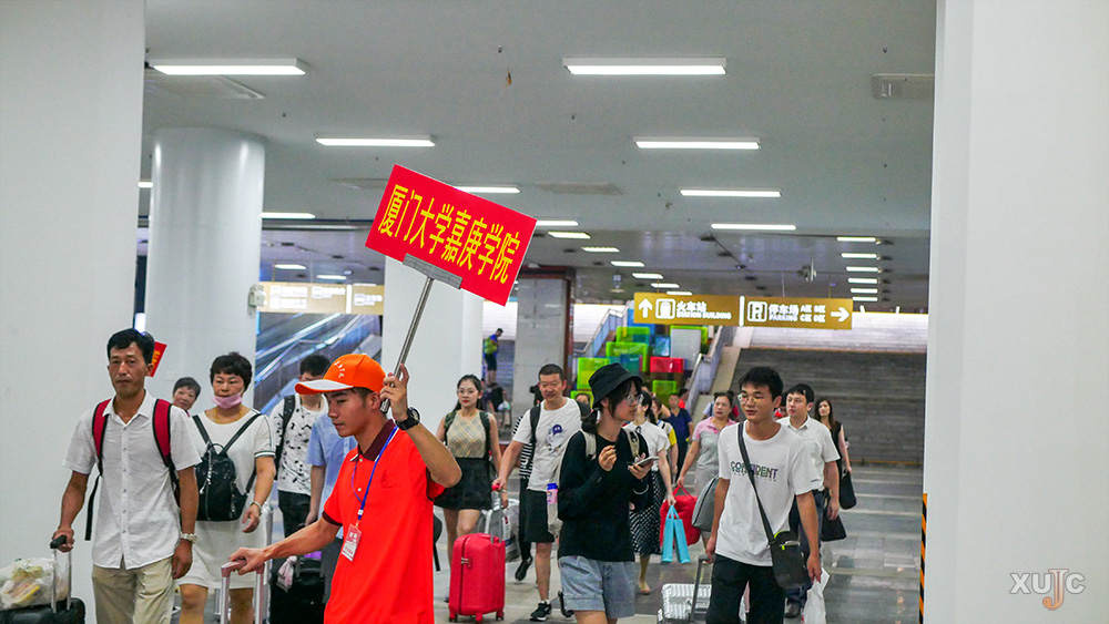清晨六点,“嘉园”在晨曦中刚醒来,迎新志愿者们就已经搭上了前往厦门火车站、高崎国际机场等迎新点的车。上午8点,“嘉园”各迎新点早已做好各项准备,迎接来自全国各地的家长和新生。