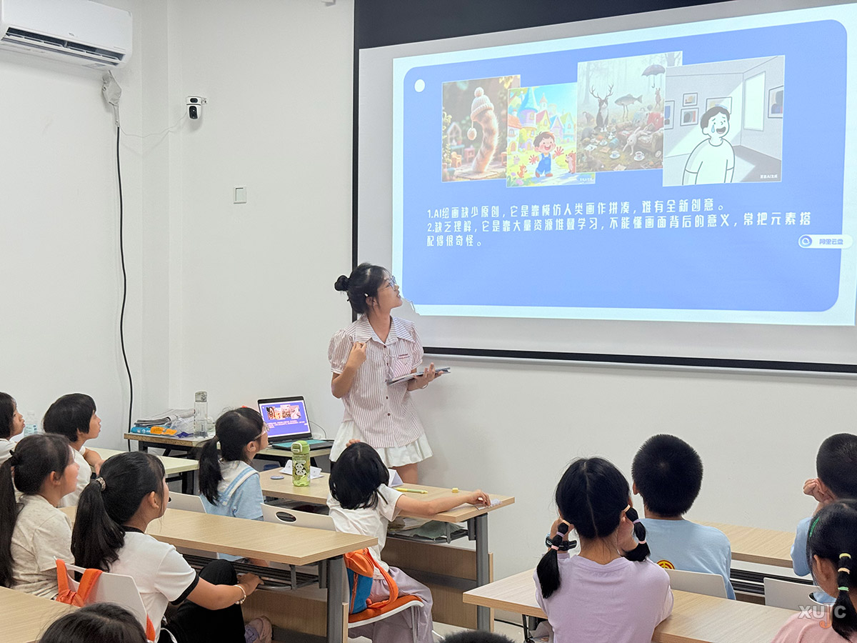 授课中,实践队队员结合“小AI问答”“猜猜我是谁”等互动小游戏活跃课堂气氛,帮助孩子们在轻松环境中初步理解人工智能概念。