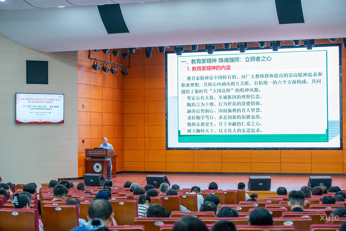 为深入学习贯彻习近平总书记关于师德师风建设的重要论述,激励广大教师自觉弘扬践行教育家精神,10月15日下午,我校在公共教学楼1号楼101多功能厅举行习近平新时代中国特色社会主义思想大讲坛第72讲暨师德师风专题教育讲座。校党委理论学习中心组成员、党总支书记、党支部书记及各单位教职工代表250余人齐聚一堂,共同聆听专题报告,深化对师德师风建设重要性的认识。