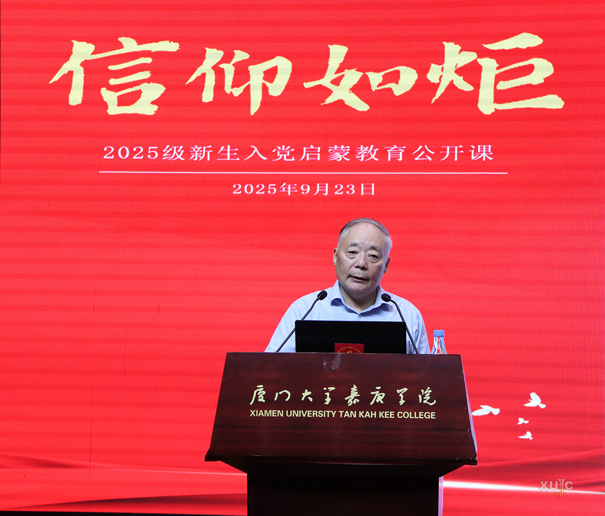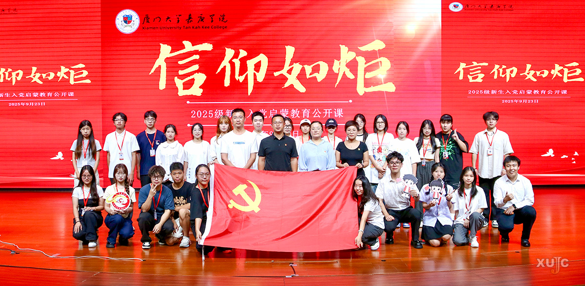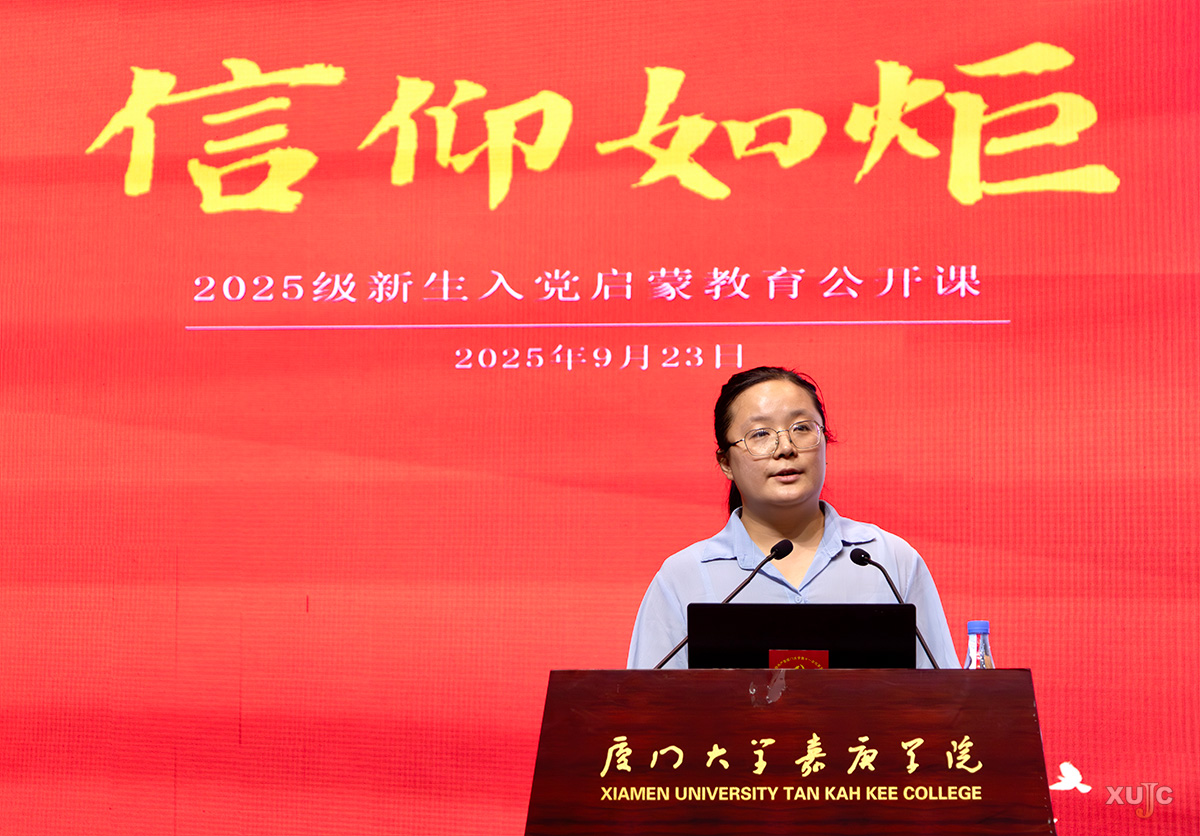 现场播放了由校学生党员服务中心拍摄的视频《榜样引路!听优秀毕业生党员这样说》《信仰如炬——厦门大学嘉庚学院学生党员入党全流程》。值得一提的是,《榜样引路!听优秀毕业生党员这样说》是2025届优秀毕业生党员在临毕业前,特地为2025级新“嘉”人们录制的一段视频。视频里讲述了他们大学生活的初心感悟、加入中国共产党的缘由以及不断向党组织靠拢的过程。温暖而有力的话语,深深触动了在场的500余名新生代表。