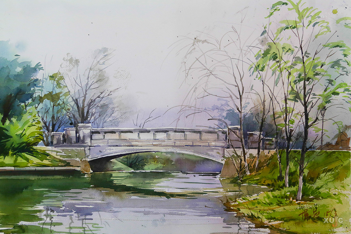 绿意渐浓,谷雨漫落,散于江南。柳丝随风摇曳生姿,青草漫漫没过堤岸,接起细雨承其轻烟缈缈。几片竹叶微颤,欲将深幽小径遮掩,却不慎抖落几颗雨珠到我的外衣上。清脆的雨滴声引我抬眸,望见凌波湖上的小块陆地正有几只鸟雀扑翅飞离,我不由得感慨:“飞鸟不孤、吾却独行”,惋惜凌波似玉般的湖面似我的愁意般难平。微风缱绻,雨滴坠入层层涟漪,溅起点点白色浪花。可是,湖中锦鲤尚且无心欣赏湖景,更何况那匆忙路过的学子呢?白雾茫雨挥洒伞面,伴着几句嬉笑言语,又似跳珠般窜于伞沿,在五六个学子之间徜徉。待到熙攘声消散,雨雾又逐渐变浓,意欲充盈归复沉静的小路,而我依旧只身缓缓前行。清风徐徐,轻抚似有兰香的小路,曲进荷池,青莲澄静肃穆,傒候心净赏客。悠然之境,令我感若仙鹤驻足之径。踏过满地落叶,此雨此物此景此境,我顿时心觉有所失,有“浓睡不消残酒”之感。主楼橙红色的屋顶交错映入眼帘,恍惚之中,似有脚步声靠近,倚着微寒之风伫立。我回眸,瞥见来者撑着墨伞,水滴渐次开出斑斓的花,构成绝世名画。凉风逐渐薄没,我于枝繁叶茂处得见凝云。“看花东上陌,惊动洛阳人”,眉如浅峰隐于水墨画,眸若秋水令人望眼欲穿,好似见得朗月映梨花,路过即得花繁似锦,轻暼便至青翠苍山。“积石如玉,列松如翠。郎艳独绝,世无其二”,江南落花时节,梅雨渐微时竟可得此佳遇。