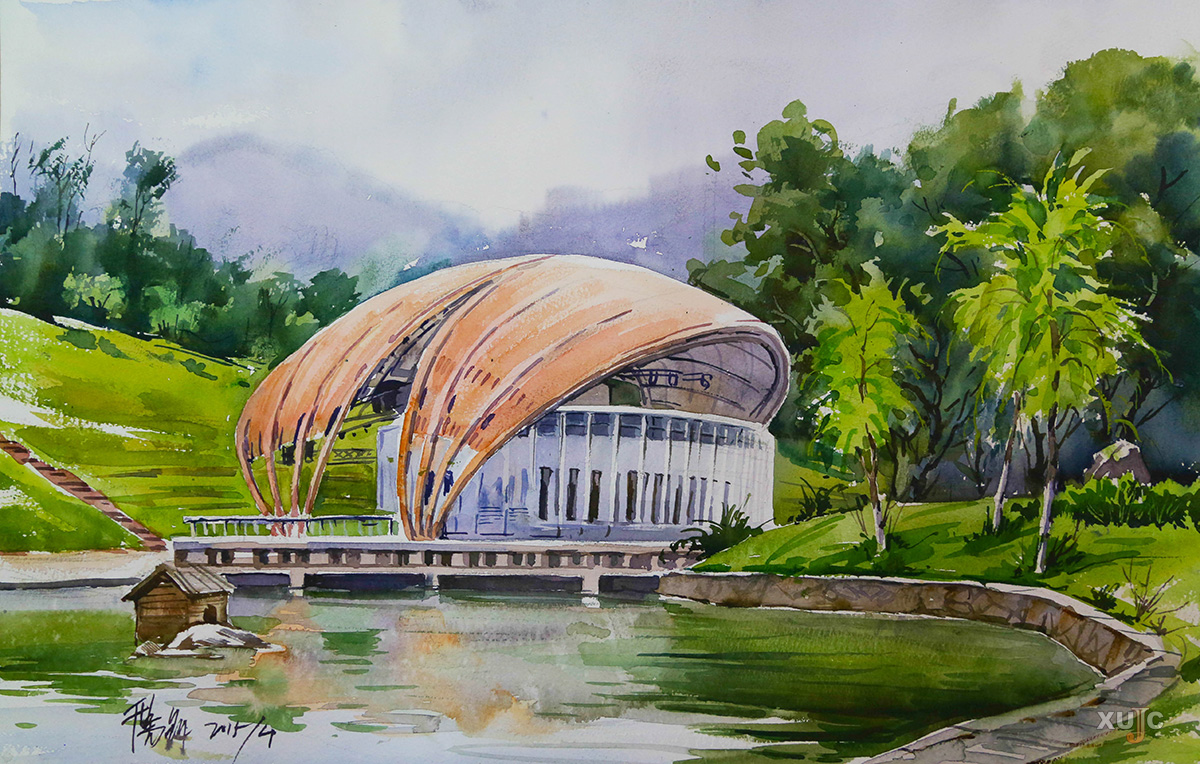 春意稀起,莺风难度玉门关。南山寒意还未完全消退,青空一沉寂,雪花就等着落为群玉。江北不似江南,需要一枝新梅来点破玉溪春,姹紫嫣红都不争春。檐下燕巢传出了稚嫩的嘤鸣,蛰虫则眠于地底静候春雷。我登上凌云高楼,临望暮冬之景,欲揽“嘉园”初春盛意于怀。薄云层叠在眼前的碧霄里,与安定下来的风一同印入文波不起的翠湖春晓上。世间万物陷入愔谧,好似有人屏下我的气息,凝滞不畅。倏忽,天昏地暝,空中雾气杂糅,慢慢卷成朵朵乌云,好似水波汹涌。一丝微风拂过细小沙粒,水面布满浅渼,几片枯叶跟着微微颤动;枝叶都耷拉着,时不时传来轻声哀啭,幼虫胆怯地裹紧土壤。浓郁的云层聚集相杂,水汽厚重,“曀曀金碧光”,辉光若有若无地流散着。不一会儿,风从四面而来凝谱成团,相容又相斥;寒气或沉或升,强而有力;天地上下有迸裂之势,闪电势如破竹将天际劈开一道裂纹,雨水倾泻而下,蛰虫从睡梦中惊醒。暗紫色的云群沉淀出彩光,状如九条神龙飞舞盘桓;青灰色的眩光旋转于云周,似有千万战马藏匿此中。风沙碎石都随着风止而安定下来,雨势反而渐大,像长江从天际飞流直下,阔大无际。我被这浩荡宏大景象所震撼,隐约瞥见天门大开。我高声询问何去何从?听见嫩芽破土而出,莺燕徘徊于树,柳絮随风飘出红墙,稚鸟晃晃飞过长廊,春风裁剪出新叶,桃花舒展笑颜……忙忙碌碌,虽辜负自然春景,厚积薄发出也只冒绿芽,但终是凌云之木。