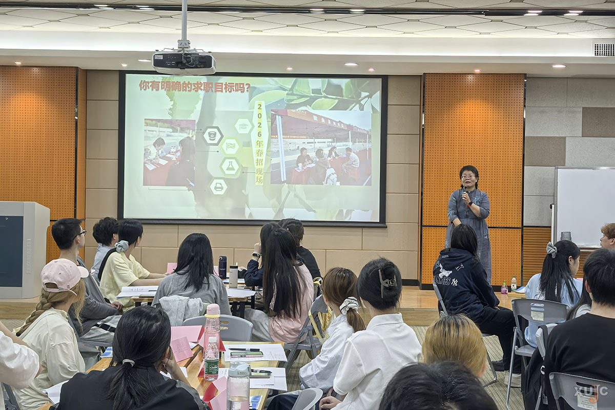 “人生目标不清,求职目标就很难立住。”厦门大学外文学院党委副书记罗俊峰指出,嘉庚学子应找到“我是谁”与“岗位要谁”的交集。她带领大家按行业分组讨论,指导每位同学绘制个人专属“能力地图”,将抽象能力转化为清晰职业定位,避免“一份简历投百家”。