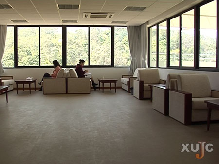 虽然独立办公室受到了教师们的欢迎,但也有些教师担心每人一间办公室会不会使教师之间的互动减少了呢?事实上,学院在教师办公空间的配套上已经考虑到了教师在“独立”之余“互动”的问题。在经管大楼5层学院设置了两间会议室,主要是提供给各系召开会议和进行学习、研讨之用。而在经管大楼6层,有一间美丽的玻璃屋,它作为教工活动室为教师们在紧张的教学之余提供了一处舒适的休息、交流场所,教师们可以在其间浏览报刊杂志或进行一些随意的谈话,也可以到特别设计的户外休息平台上,欣赏经管大楼周边的湖光山色,呼吸呼吸新鲜空气,以调整状态更好地投入到教学工作中去。