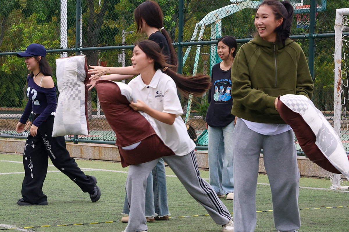 2025年全国硕士研究生招生初试将于12月中旬举行。为了缓解备考学子压力,帮助他们以更好的心态迎考,近日,厦门大学嘉庚学院学工部、团委,以及心理健康服务中心联合举办“枕头大战——‘枕’救不开心”活动。(摄影:肖黄禹翔)