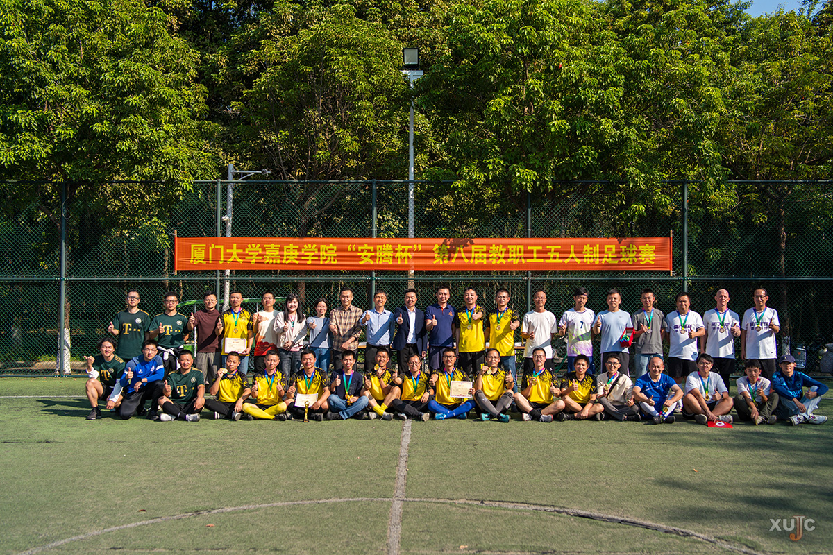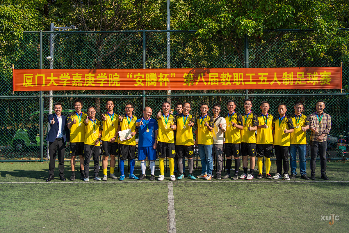 7周,14场角逐,129个精彩进球!11月24日,我校“‘安腾杯’第八届教职工五人制足球联赛”在师生的共同关注下激情收官。这曲属于秋季的“战”歌,写就终章:资保联队(资产与后勤管理部+保卫部)加冕冠军,体机联队(体育教学部+机电工程与自动化学院)、理工联队(信息科学与技术学院+建筑学院)、政艺联队(设计与创意学院+教务部+教育技术服务中心)分获亚军、季军、殿军,附属学校(厦大附中、厦大附小)联队获评优秀组织奖。