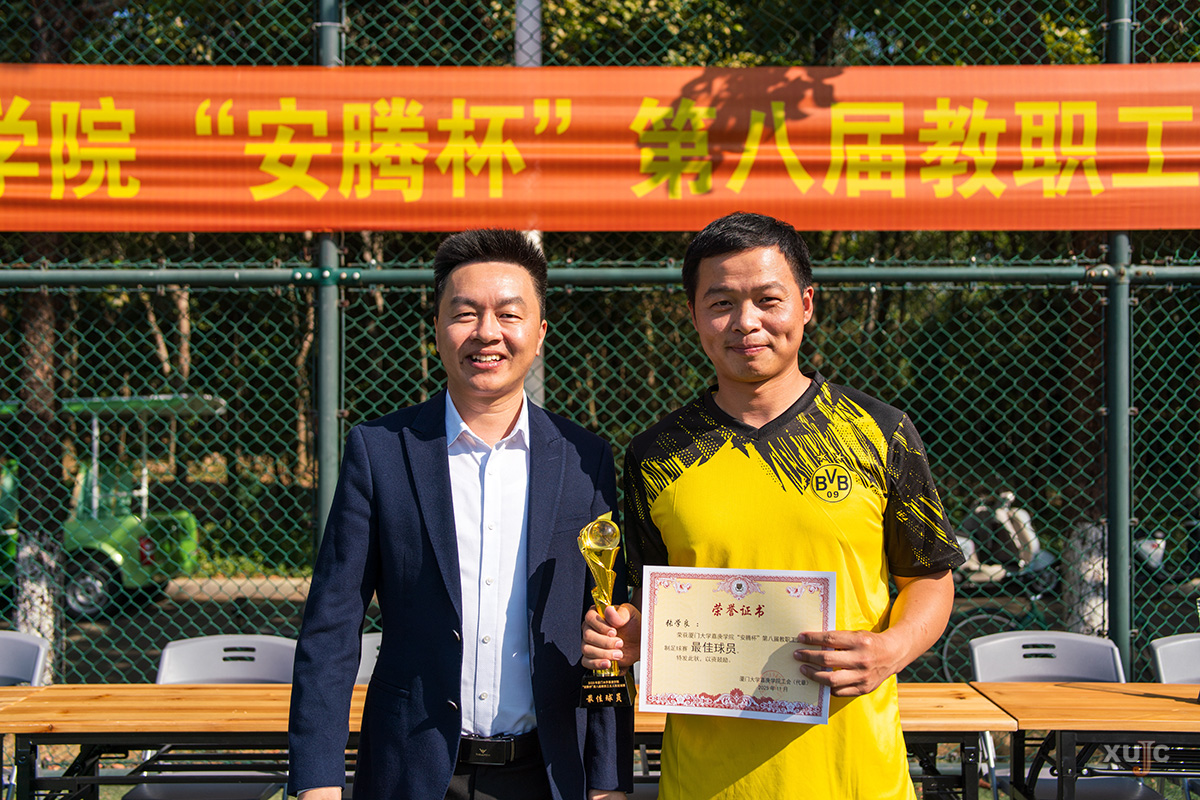 在个人奖项方面,体机联队的胡星灿表现亮眼,不仅以6场14球的佳绩拿下最佳射手奖,还荣获最佳新人称号。资保联队的张学良凭借稳定发挥带领球队夺冠,当选最佳球员。闭幕式上,嘉庚学院院长助理、工会主席廖智军,设计与创意学院院长林波,IT服务中心主任郑振祥,信息科学与技术学院副院长郭一晶,校工会副主席詹三河,资产与后勤管理部副部长、教工足球协会会长蒋瑾超,保卫部副部长陈拥军,教务部副部长严璟等为获奖集体和个人颁奖。