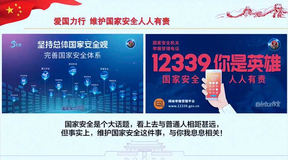 除了殷颖萱外,我校各院系学子纷纷在课后表达了自己的学习感想(摘编附后)。与此同时,我校还充分利用校园各种传统媒介和新媒体开展国家安全教育。譬如,制作国家安全宣传海报,张贴在学校海报栏中,营造良好的国家安全宣传氛围,并通过各级新媒体平台发布“全民国家安全教育日”专题推文,扩大宣传覆盖面和影响力。