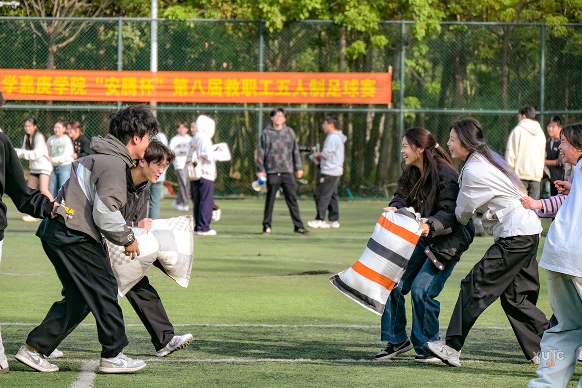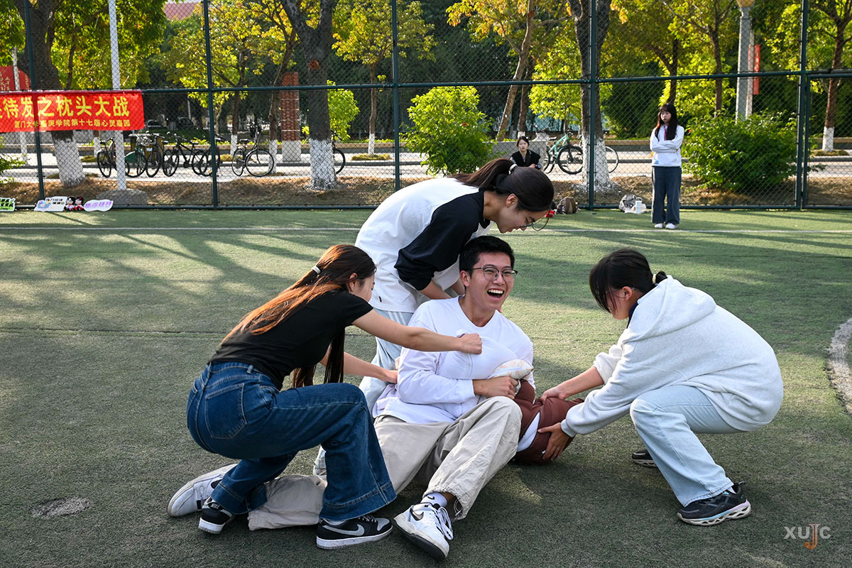 12月14日下午,我校心理健康服务中心旗下学生组织“心灵嘉园”在五人制足球场举办了“枕”装待发之枕头大战活动,助力“嘉”人们以恰当、安全的方式释放压力,在欢乐中收获友谊。