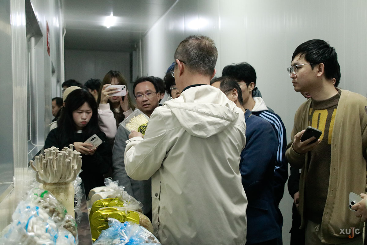 在福建万辰生物科技集团股份有限公司(以下简称万辰生物),一场改变传统认知的科技农业体验悄然展开。同学们循着现代化生产车间的动线,全程观摩金针菇、蟹味菇等食用菌的工厂化培育、生长调控与智能包装流程。货架式立体栽培实现空间高效利用,养料瓶循环系统践行绿色发展理念,光控生长技术精准调控作物周期,一系列创新技术让“靠天吃饭”的传统农业焕发出科技驱动的全新活力。