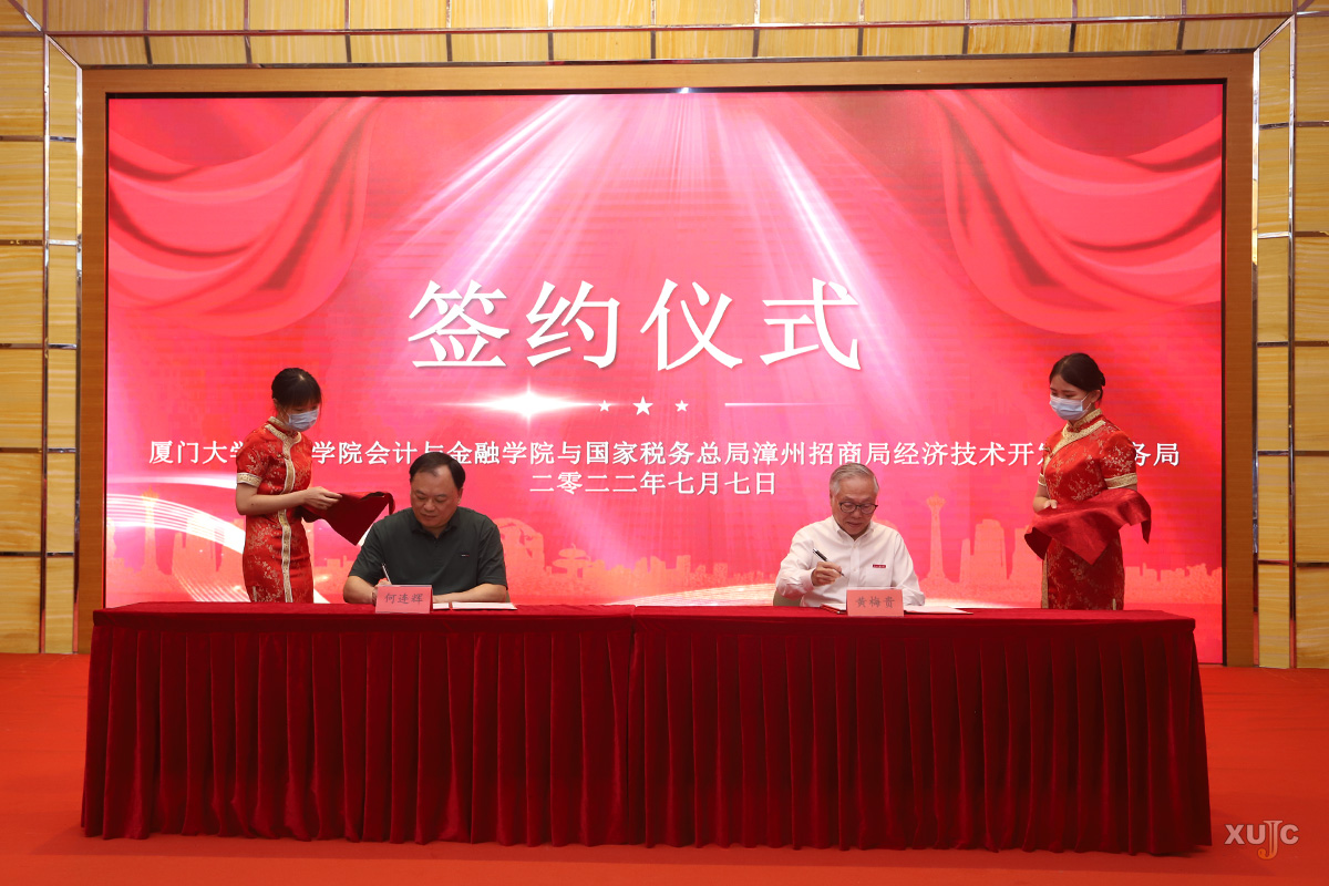 7月7日上午,“青春‘税’月·亲清税声”税收宣传视频大赛颁奖仪式在漳州招商局经济技术开发区华商酒店一楼会议厅举行。仪式上,我校会计与金融学院院长Ng Beoy Kui(黄梅贵)与国家税务总局漳州招商局经济技术开发区税务局局长何连辉签署税校共建合作协议。