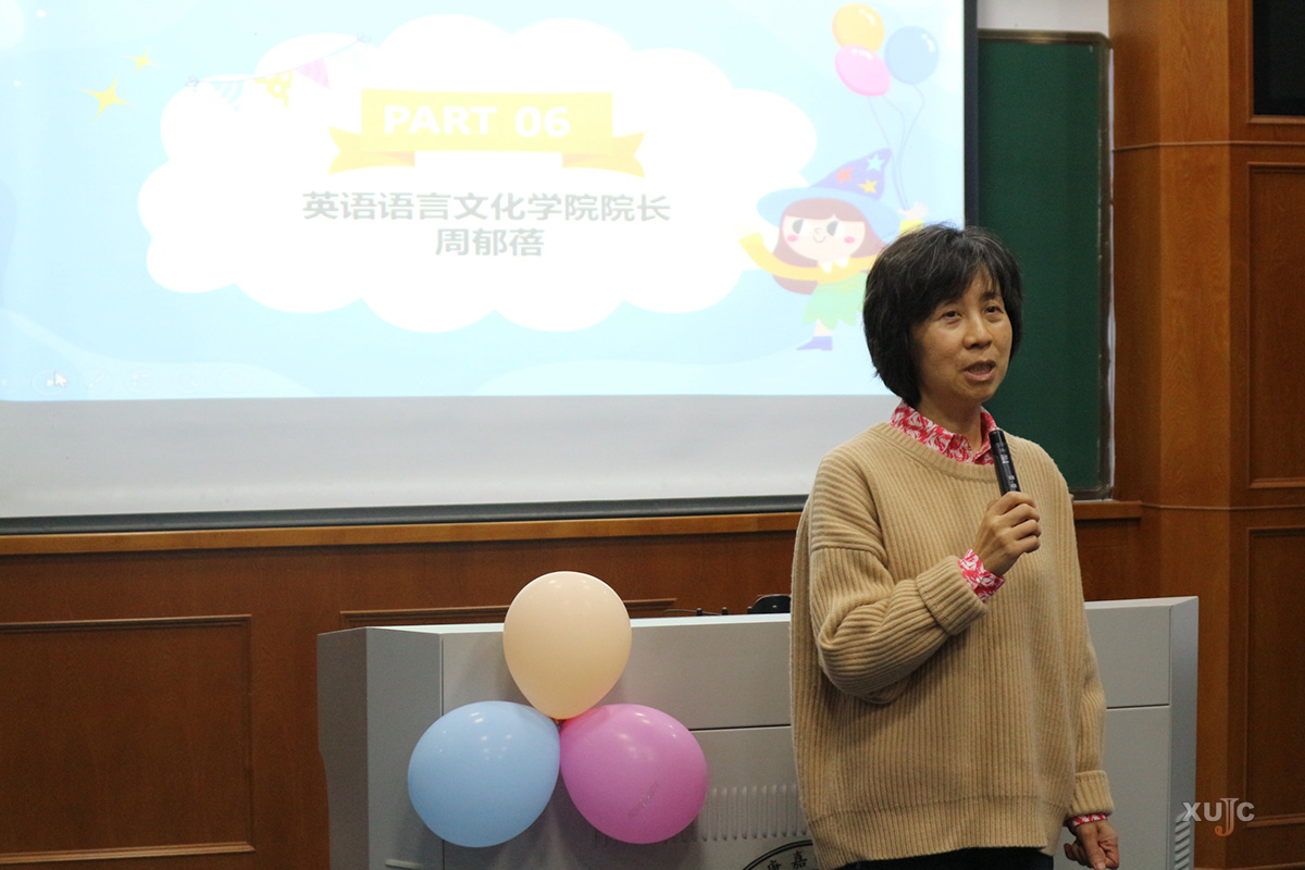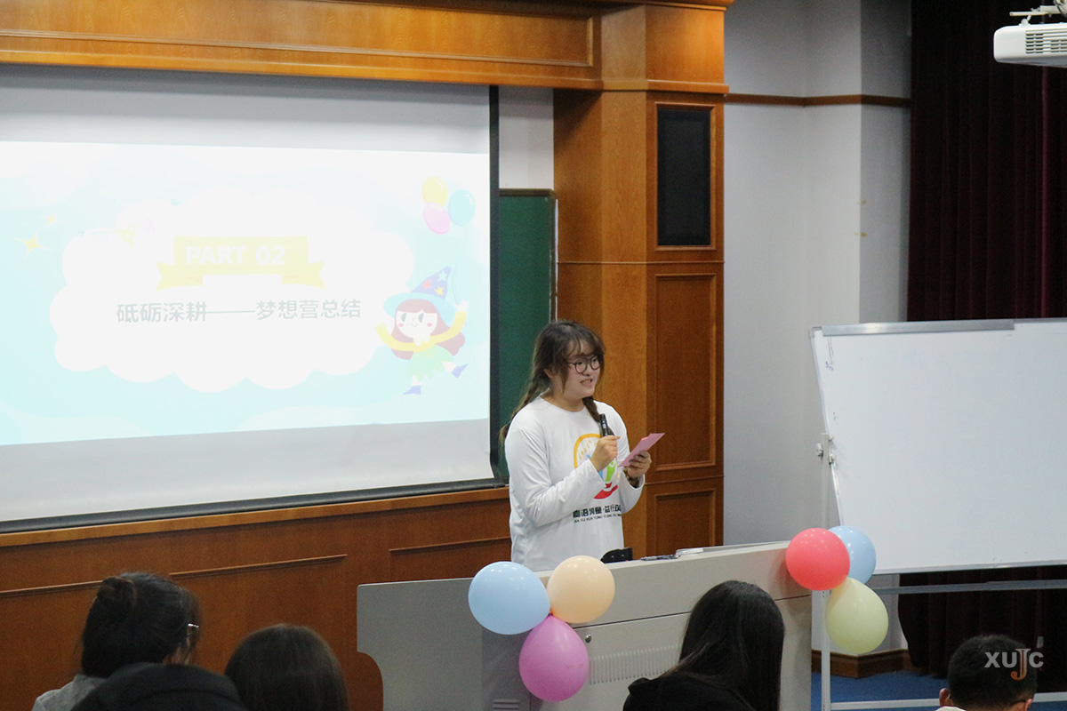 英语梦想营团队负责人陈欣瑶总结了本学期的志愿者工作。她回顾了项目的整个过程,并感谢了教师组、后勤组、宣传组志愿者的辛勤付出。