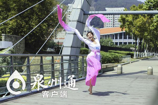 泉州晚报社-泉州通客户端4月18日讯(东南早报记者林维真 通讯员嘉闻)亭中曼舞,飞扬的绸带迷醉眼眸;腾跃桂花山,向着天空生长;旋转月亮桥,留下惊鸿一瞥……一处风光一支舞,近日,厦大嘉庚学院的8位女大学生或身着锦衣,或以练功服俏丽亮相,她们翩若惊鸿,舞动“嘉园”的15个角落,取名《15支“芳华”献给15岁的你》。