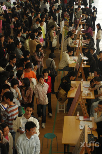 当天,招聘会场面十分火爆,除了由我院2009届毕业生唱主角外,还吸引了众多非应届毕业生和来自福州、泉州、厦门等地高校的毕业生。一位在现场组织工作的老师表示,今年前来参加的毕业生可能比去年多了一倍。与往年一样,知名企业仍吸引大量毕业生的关注,许多知名企业的招聘摊位前排着长长的“人龙”。而一些新兴企业也不甘示弱,他们主动出击,直接在招聘会现场散发公司材料,并主动与毕业生交流,希望借此机会吸纳优秀的人才。