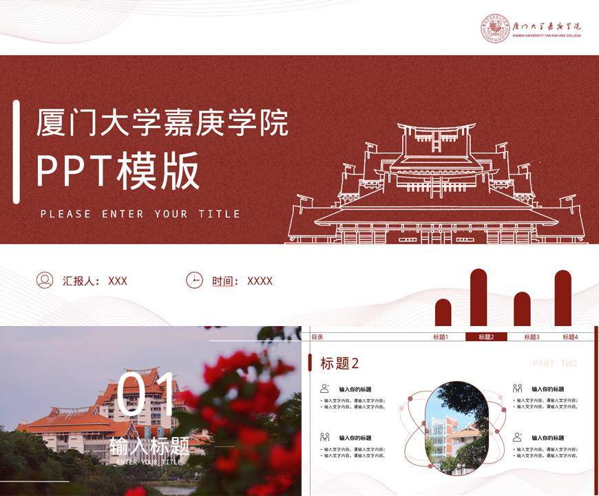 红色校徽封面PPT模板