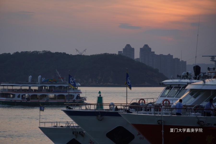 咸咸的海风吹打在脸上,抬头便能望见天边美丽的晚霞。停在岸边的轮渡与经过的游船会面,一切都让人觉得十分美好。