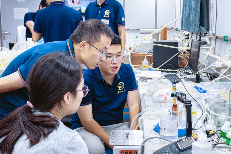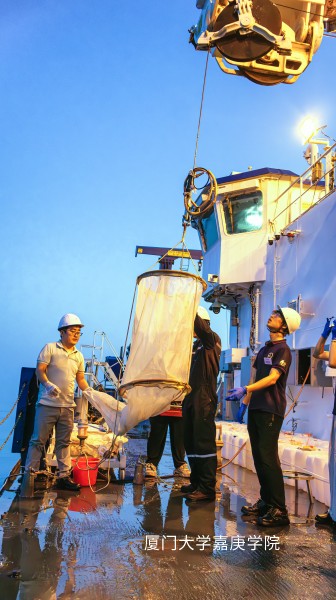 身为亲历这场深蓝远征的环境学子,回忆,是维纳斯带映衬下CTD采样检测营养盐的严谨迅速,是无边暗夜中进行浮游生物拖网采集的循序渐进,是烈日下下放箱式采样器时的齐心协力……它们共同烙印下问海求知的铮铮誓言:以‘嘉庚精神’为锚,以‘科研求真’为罗盘,在深蓝的求知之境中,践行着‘科研者’永不言弃的诺言。 这里没有精心设计的构图,只有汗水浸透的使命,与大海镌刻进我们骨血的精神图腾。