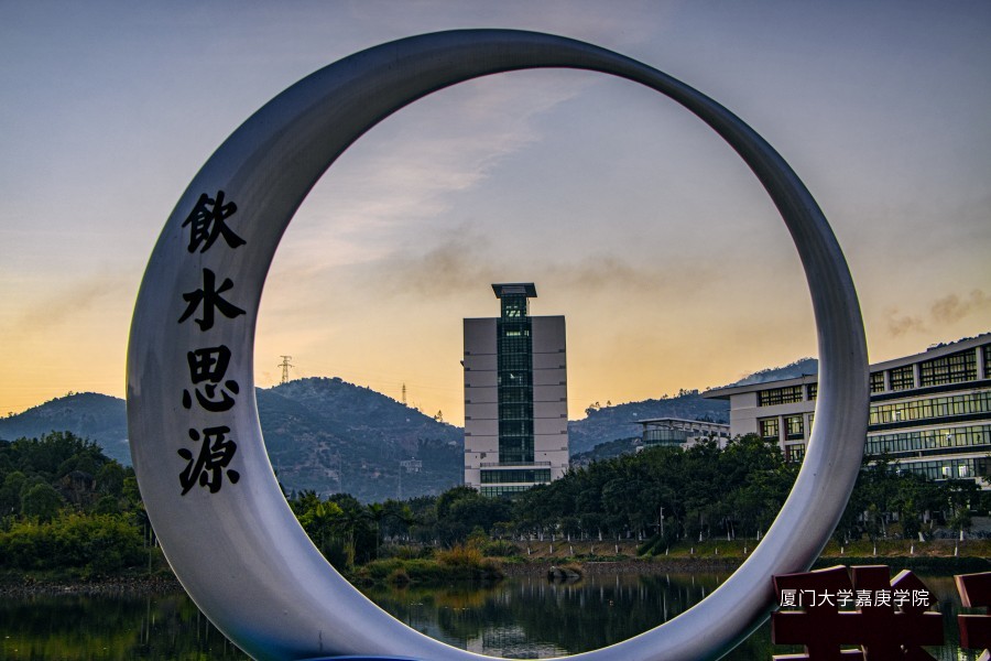 该张照片拍摄于2021年12月7日,在等待晚霞的同时,我拿起相机在校园内四处转悠,饮水思源立在嘉园的湖边,直直望去,他正好将对面的生化楼圈起来,形成别一番韵味。