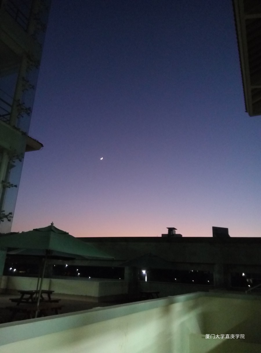 太阳的升起唤醒了沉睡的嘉庚, 时间在嘉人们的忙碌中悄悄流逝,不经意间如勾的月亮已爬上树梢,嘉人们便也回了“嘉”。这便是在嘉的每一天。