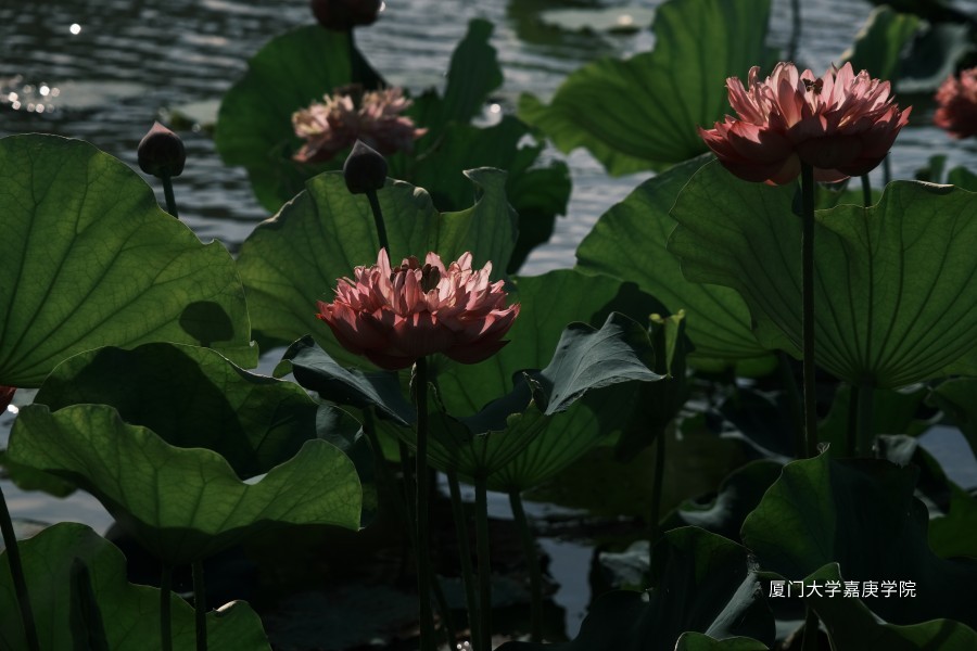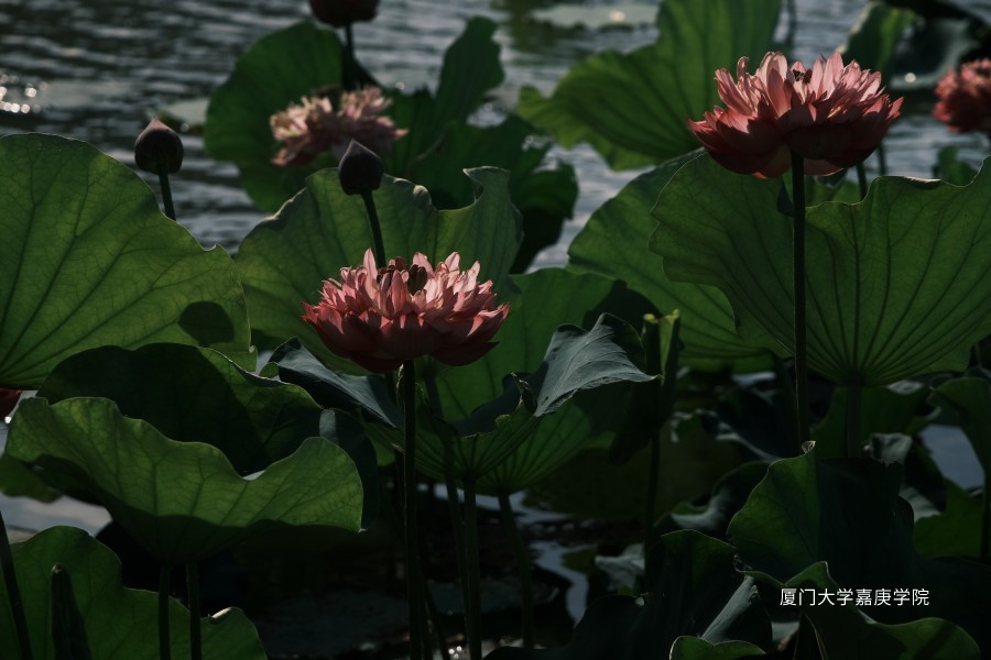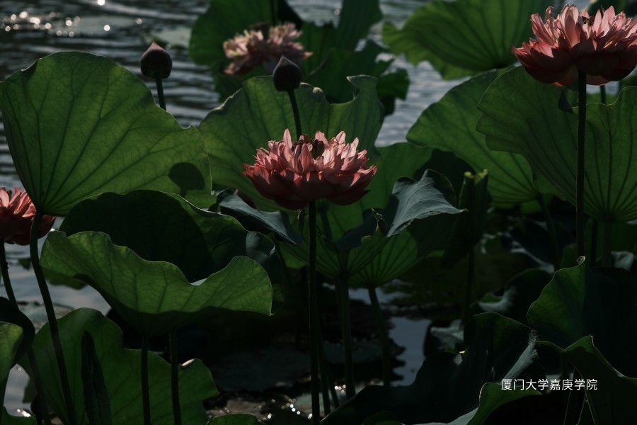 夏日的清晨,阳光微微亮,昏晨中的荷花美丽动人
