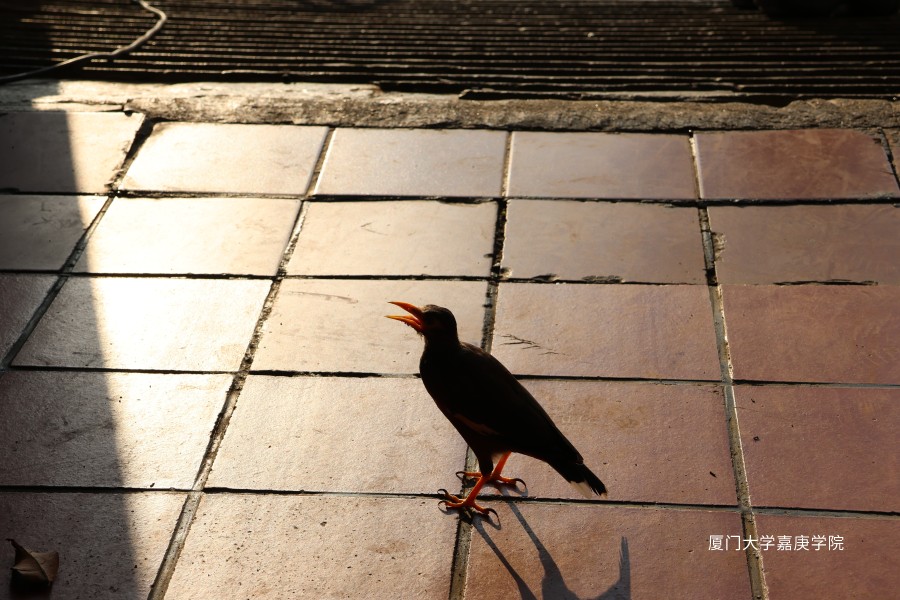 橙红的喙部,鸣叫的姿态,向着光,富有极强的生命力